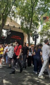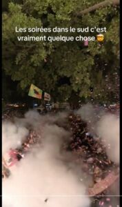 En soit c’est déjà pas si mal. Et contrairement à l’année dernière, où les Dieux en avaient décidé autrement, et ma bâche envolée avant même le début des festivités…. Cette année, on peut pas dire : elle était aux premières loges puisque située juste en dessous du Victor Hugo ! Le plus drôle c’est quand même ce garçon qui, alors que je photographiait ma bâche depuis le comptoir m’a dit « Tu peux pas lui demander à la fille de descendre ? Je lui paye un verre ! »